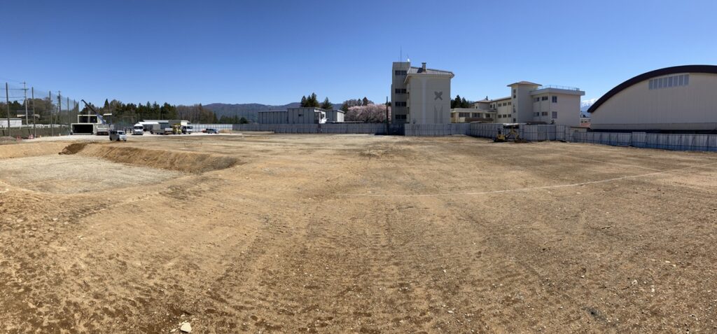 西棟の建設にむけて準備が進む薫ヶ丘4月から新校舎西棟の建設が始まります。小体育館やプールなどが解体されて整地されたグラウンドには今、工事を担う株式会社ヤマウラの現場事務所が建てられ、15日(水)…