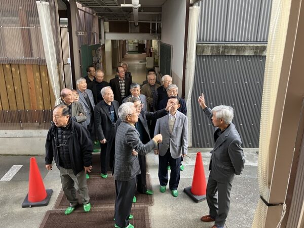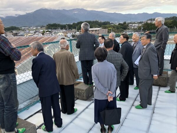 24日(金)午後、昭和44年3月に卒業された高校21回C組の皆さん18名が母校を見学されました。同窓会館に集まってはじめの会を行い、会館に収蔵されている美術作品や歴史的な品々を見学した後、高志館や懐かしの校舎を巡りました。ちょうど在学中の42年に南校舎(管理棟)が竣工。37年には小体育館(新体)ができました。中校舎(33年竣工)では化学実験や数学の授業を見学して屋上へ。築63年になる小体を屋上から眺めて記念撮影。小体ではちょうど1年生女子のバドミントンの授業が行われていました。在学時のC組には女子生徒は2人だけ。男子生徒だけのクラスもあり、女子生徒が半数となった現在の姿に驚きながら生徒の皆さんと一緒に写真を撮影しました。11月始めには小体の解体工事が始まりますので、小体が現役の姿を見ていただく最期の機会となりました。