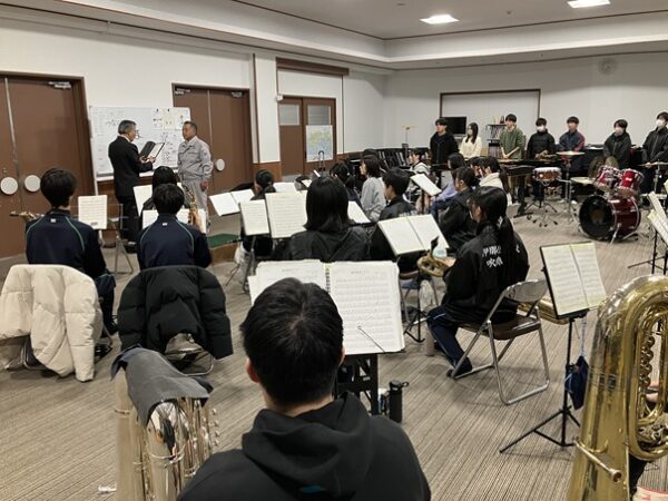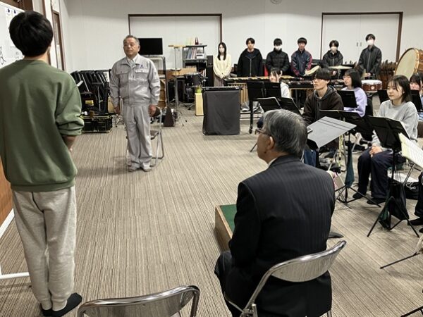 9日(金)1年半に及ぶ市道伊那北学校線(通称一万円道路)が完工して、現場事務所も撤去されました。この間、西武建工(株)の現場代理人としてこの工事を担っていただいた三浦重文さんをお招きして、同窓会から感謝状を贈呈しました。贈呈式はちょうど吹奏楽部の皆さんが練習している時間に行われましたので、生徒の皆さんと一緒に感謝の気持ちをお伝えすることができました。杉田純治副会長から感謝状を贈り、吹奏楽部長さんよりお礼の言葉に引き続き吹奏楽部の皆さんが「銀河鉄道999」を演奏。三浦さんから「大学入試は当面の目標、その次の次の目標に向かって頑張ってください。私も60歳間近になりましたが、今も資格試験に挑んでいます」とお礼の言葉がありました。この工事に関わっていただいた多くの皆さまに心から感謝申し上げます。