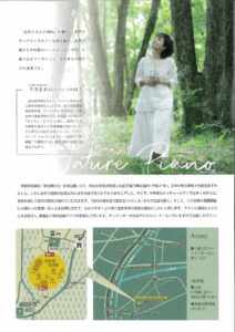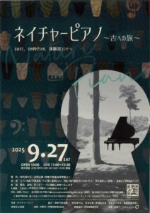 平澤真希さん(高38)の今年の「ネイチャーピアノ~古への旅」のチラシが同窓会へ届きました。その日、その時だけの、体験型コンサートが、9月27日(土)伊那市東春近の老松場の丘・古墳公園で開催されます。ゲストとして湯澤かよこさん(高56)も出演。古墳の発掘調査に加わった濱慎一さんによる古墳の説明も交えて「古代の魂を音で招き古(いにしえ)からの伝言を聞く」コンサートです。是非お出かけ下さい。入場料2000円。予約・お問い合わせは 0265-96-7183 まで。