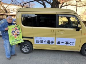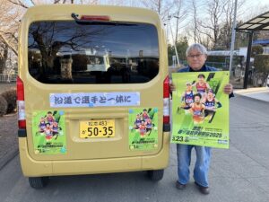 今年も3月23日(日)に「春の高校伊那駅伝2025」が開催され、全国から選手が伊那へ結集します。この大会立ち上げには伊那北高校陸上部の監督・選手の皆さんが関わり、今では高校駅伝を代表するレースに育ちました。伊那北高校は今回も男女ともに単独チームが出場します。矢島信之さん(高15)はこの大会応援のため、愛車にポスターやステッカーを貼って写真のような宣伝車に仕立て、市内を走り回っています。「沿道で選手と一体に」応援をお願いします。