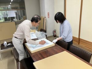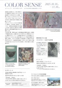 15日(水)アンフォルメル中川村美術館の赤羽義洋さん(高25)が来館され、同窓会で所蔵している小松良和さん(高21)の作品9点を借用されました。これらの作品は10月18日から11月10日まで中川村のアンフォルメル美術館で開催される、長野県立美術館移動展連携展「スペクトル―交差する表現」に展示されます。チラシの表紙には、小松さんの代表作(部分)が掲載されました。この作品は移動展「COLOR SENSE 色がみちびく、現代美術の世界」で本館に展示されます。同窓会所蔵作品はアトリエ棟に展示され、19日(日)13:30から14:30まで、北澤一伯さん(高21)のアートトーク「ふたつの消滅によせて」(事前申込不要)が開催されます。本館、アトリエ棟ともに無料で鑑賞できますので、小松作品を見にお出かけください。