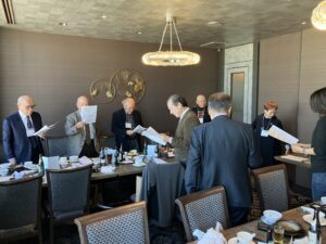 15日(土)名古屋市金山町のANAクラウンプラザホテルにおいて、東海支部総会(湯沢由紀夫会長=高26・藤田医科大学副理事長)が開催されました。学校から山岸明校長先生にも参加いただき、高校3回生から73回生まで14名が参集。今回は現役の大学生も参加してくれました。湯沢会長は「来年はさらに、若い方の参加を促したい」と挨拶されました。矢﨑朱実事務局長の進行で議事が進み、記念撮影に続いて懇親会へ。井口昭久さん(高14)は乾杯の挨拶で「けむり」というご自身のエッセーを朗読。かつての故郷の情景が蘇りました。懐かしの校歌や「天竜河畔」を歌って大いに懇親を深めました。