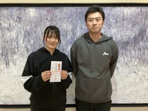 19日(水)フェンシング部顧問の大槻智哉先生と選手の皆さんが同窓会事務局へ報告に来てくれました。12月28日に開催される全日本選手権大会へ出場する藤原さんは「全日本は一般の方と対戦するので、気後れせずに戦ってきます」と抱負を語ってくれました。さらに1月8日~11日に開催されるジュニア・オリンピック・カップ・フェンシング大会には、本校から男女5名の選手が出場しますので、大会での活躍を祈って同窓会から激励金を贈りました。10月に滋賀県で開催された国民スポーツ大会において少年女子フルーレ(団体戦)でみごと準優勝に輝き、ポイントゲッターとして活躍した縣さんから銀メダルを見せていただきました。このように本校のフェンシング部は全国大会で活躍しています。