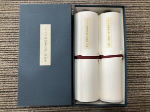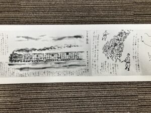20日(木)山形県村山市の「小さな小さな平和祈念館」の下山礼子さんから、叔父の澤田精之助さんが書き残された『シベリア抑留者の想い出絵巻』のレプリカが同窓会へ寄贈されました。このレプリカの制作には那須丈夫さん(高9)が深く関わっているため、そのご縁で伊那の地へ届きました。現物は32mに及ぶ長大な絵巻物で、この10月に京都相国寺の宝物リストに入れられて「相国寺承天閣美術館」に納められました。昨年宮内庁にもレプリカが納められています。レプリカは上下2巻に分割されていますが、会館2階のホールに広げたところ、床にやっと収まるほどの長さでした。シベリアの強制抑留のありさまが墨絵と筆書きの文章で記されています。貴重な資料なので、多くの方にご覧いただきたいと考えています。展覧会などに貸し出しますので、同窓会事務局へお問い合わせください。