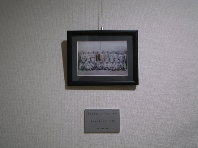 これまでにも多くの貴重な資料や写真が同窓会へ寄せられましたが、本校の歴史が刻まれた資料がありましたら、同窓会事務局へご連絡ください。現在、100周年記念事業の一環として『100年史』編纂作業が進められていますので、ご協力をお願いします。今年7月、平成21年に103歳でお亡くなりになった伊那中1回生の中村(小田切)宇源治さんのご家族から、伊那中野球部創設当時の写真が届けられました。早稲田大学からコーチを招いて指導を受けた際の記念写真です。早々、写真を複写して同窓会館に展示しました。