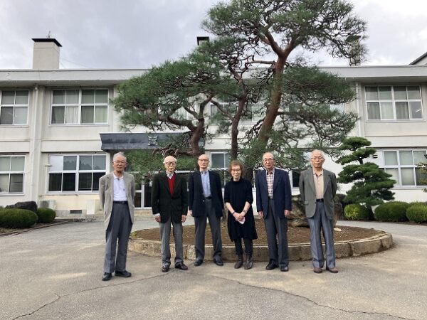16日(木)、昨夜高遠さくらホテルにて同期会を開いた12回生の皆さんの中から6名が母校を訪問されました。皆さんが高校1年の昭和32年5月、校舎が焼け落ちて不自由…