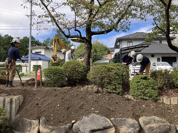 道路工事に伴いツツジ類が移植されました